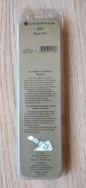Base Leupold para Ruger 10/22, de una sola pieza, acero, en su blister sin abrir. 30 Euros envío peninsular incluido.