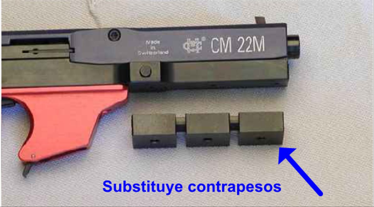 Vendo contrapeso dinámico para pistolas Morini CM-22, susbtituye la barra y los contrapesos originales.