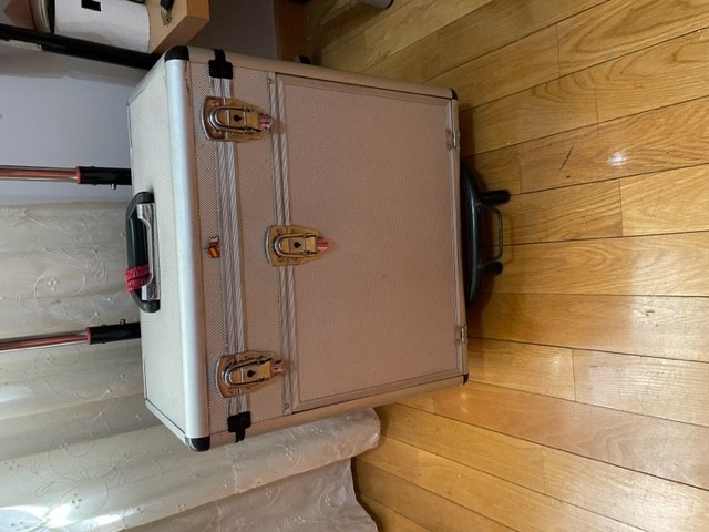 Se compone de 4 cajones frontales y uno superior, tanto en el frontal como el cajón superior llevan llave, la maleta va sobre un carrito con ruedas para facilitar el transporte se encuentra en Ciudad Real para su recogida en mano.