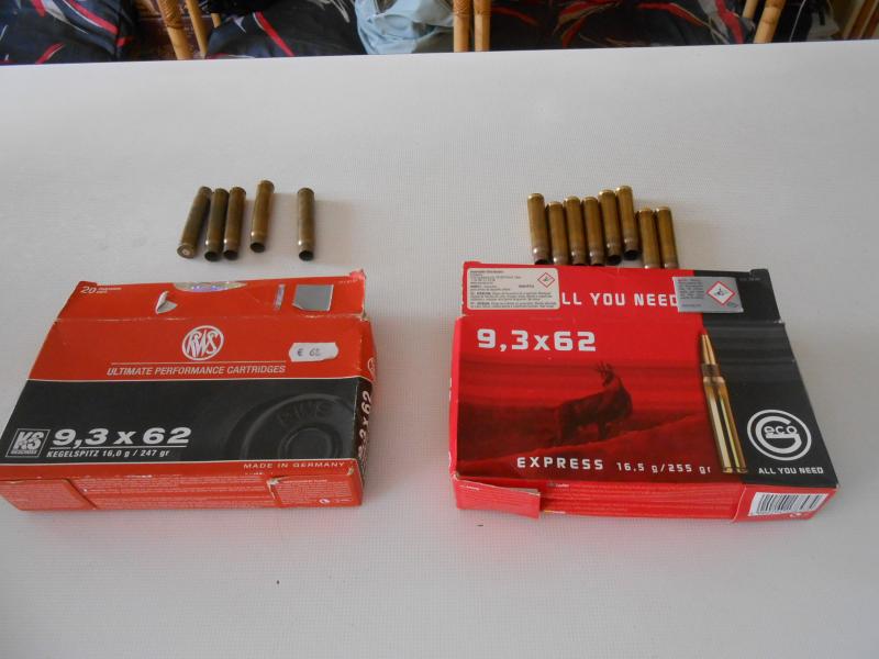 saludos: pongo a la venta 32 vainas de un disparo del calibre 9,3x62, 20 Geco y 12 RWS, por 20 euros con portes incluidos, se encuentran en Santander por si se prefiere trato en mano.