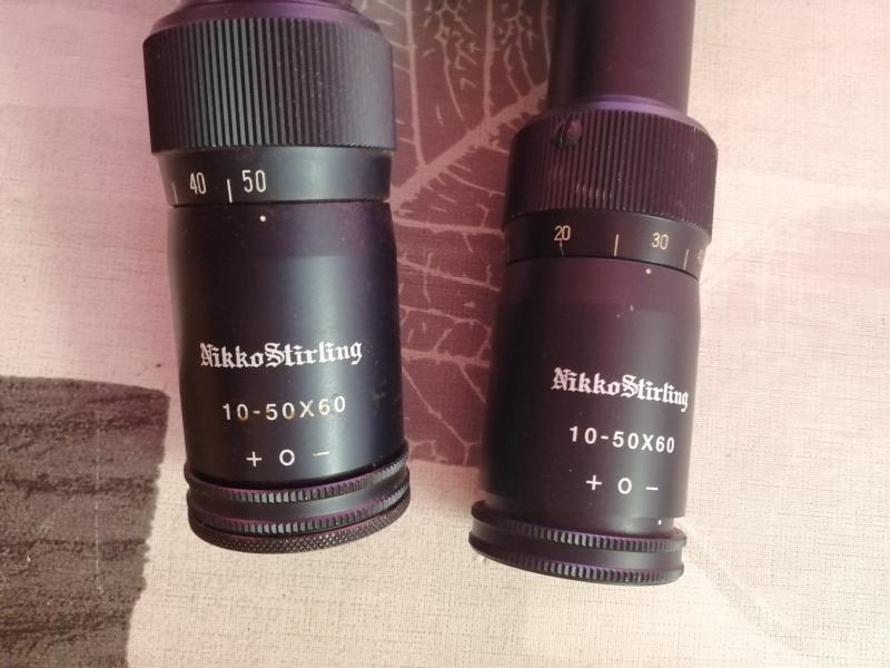 Tengo dos visores nikko stirling 10-50x60 sportman Diamond, óptica japonesa, rueda de paralaje grande de aluminio, uno es retícula mildot, el otro retícula Nato, tienen huso pero funcionan perfectamente.
