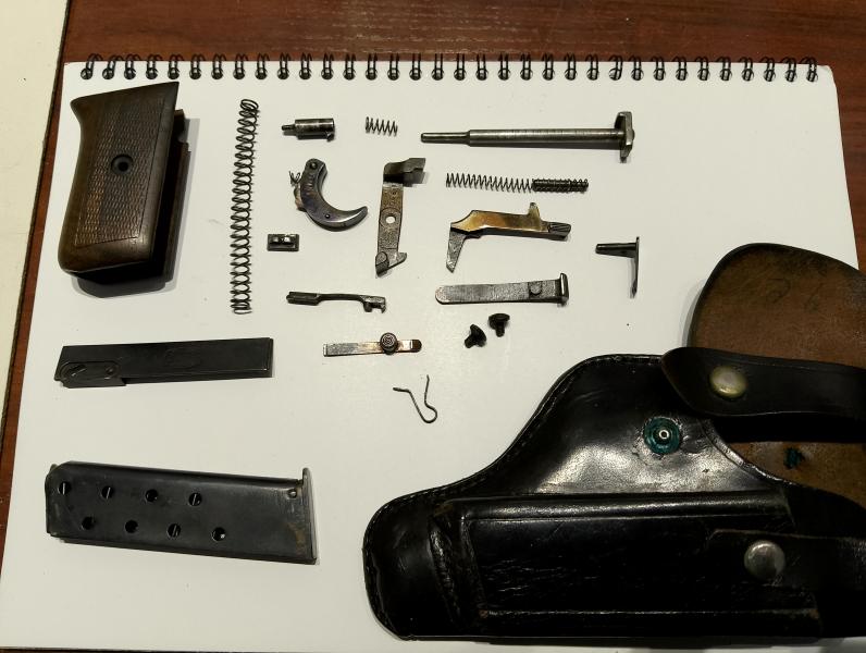 Dispongo del piecerio de la pistola Máuser, mod.1910 que se puede ver en la foto. Además entrego una funda de dicha pistola. El precio de todas las piezas serían 30€.