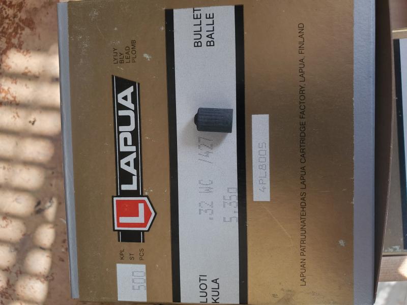 Puntas de competición Lapua del calibre 32WC de 5,35g y de 6,35g a 100€ el millar.