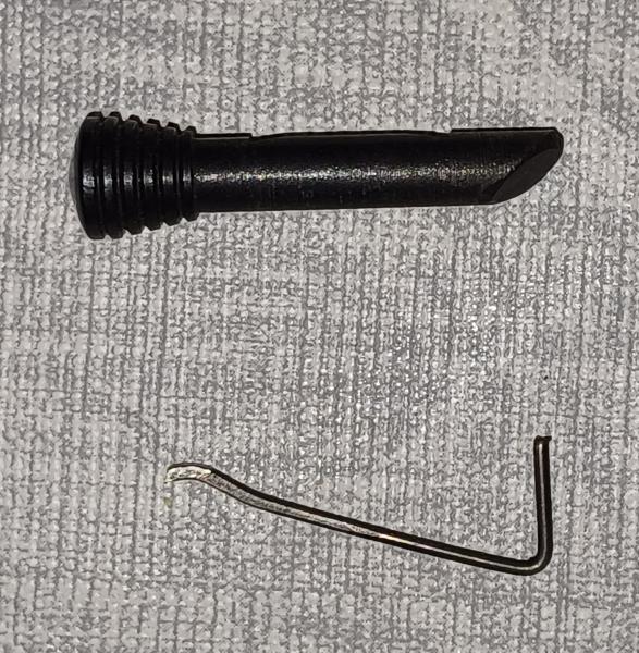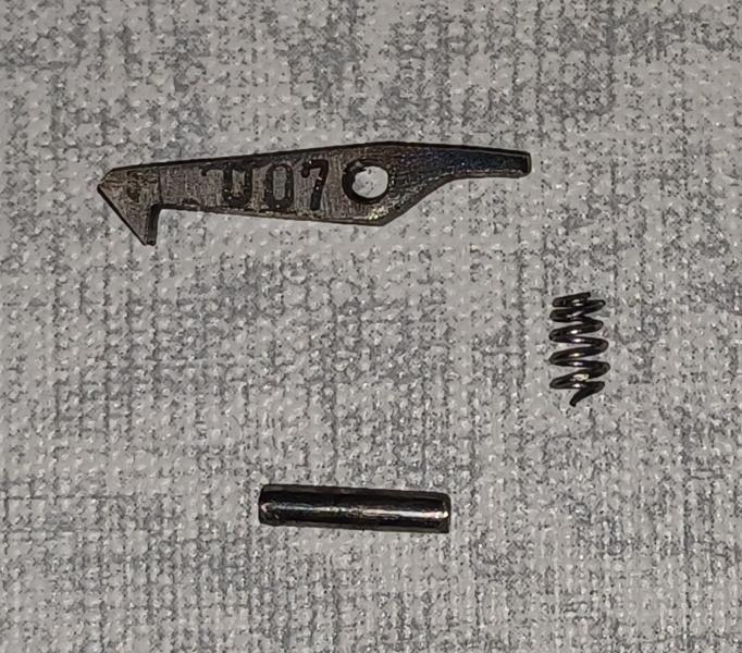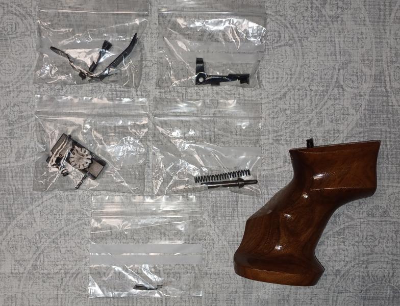 Se vende piecerío de una Drulov 75, consistente en una cacha sin retocar (sin marca de talla, pero por tamaño vendría a ser una M-L), conjunto de uña extractora + pasador + muelle, conjunto aguja percutora + muelle, alza trasera con pasador y muelle, palanca de montado con pasador y tornillo, guardamontes y tornillo, y retén del cierre con muelle.