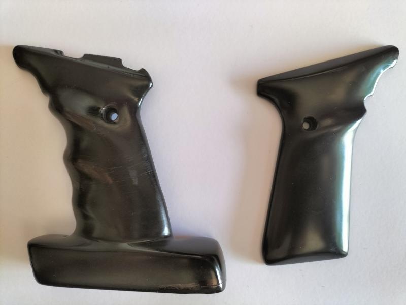 -Cachas anatomicas de tiro, para zurdos, no ajustables, talla M/L , en pasta sobre madera, con alguna señal de uso.Precio 55 euros + envio.