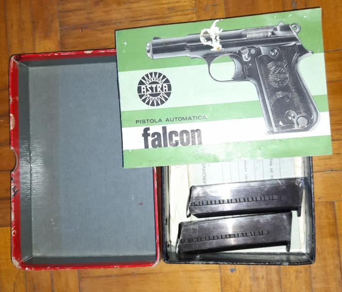 Caja de pistola Astra Falcon con manual de instrucciones y dos cargadores del 9 Cto., precio 70 euros más 6 de portes de Nacex, si hay que enviarla.