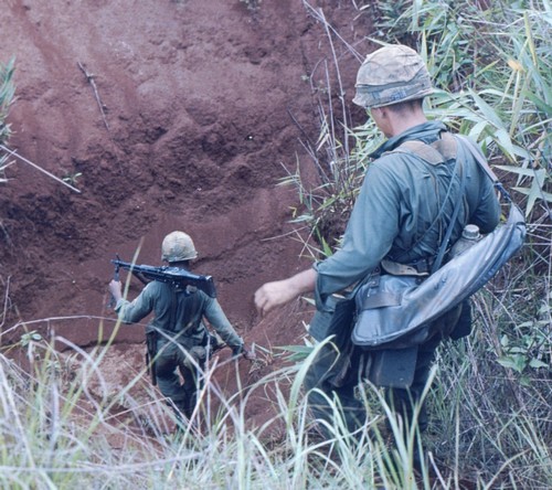 Se trata de la funda de protección de un cañón de repuesto completo para la ametralladora M60 americana.