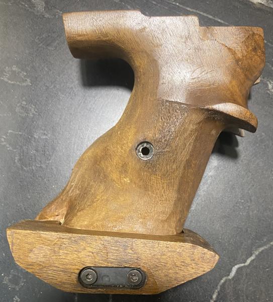 La cacha es de diestro y esta retocada y si te bien estupendo y si no, la puedes retocar por un módico precio sin pena de manipular una nueva.
