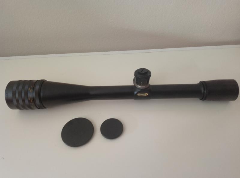 Está en muy buen estado, comprado en armería y sin marcas de las anillas. Trae las tapas roscadas de aluminio, tapas flip up y un nivel para carril dovetail.