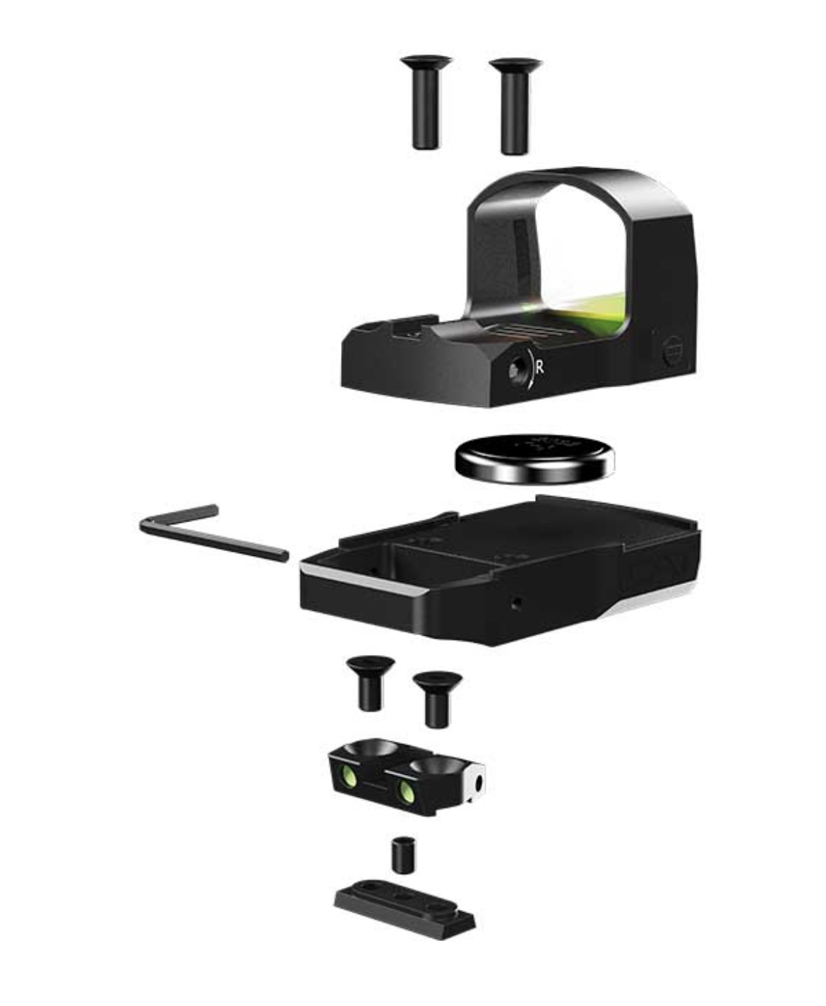 Sistema de mira Red Dot compacta, de bajo perfil con montaje magnético y alza fotoluminiscente, para pistolas Glock de todas las generaciones con ancho de corredera 25.5 mm. 330 € envío incluido