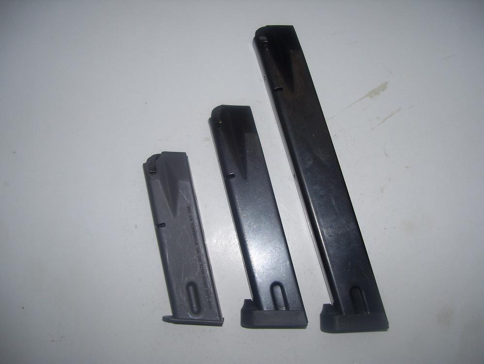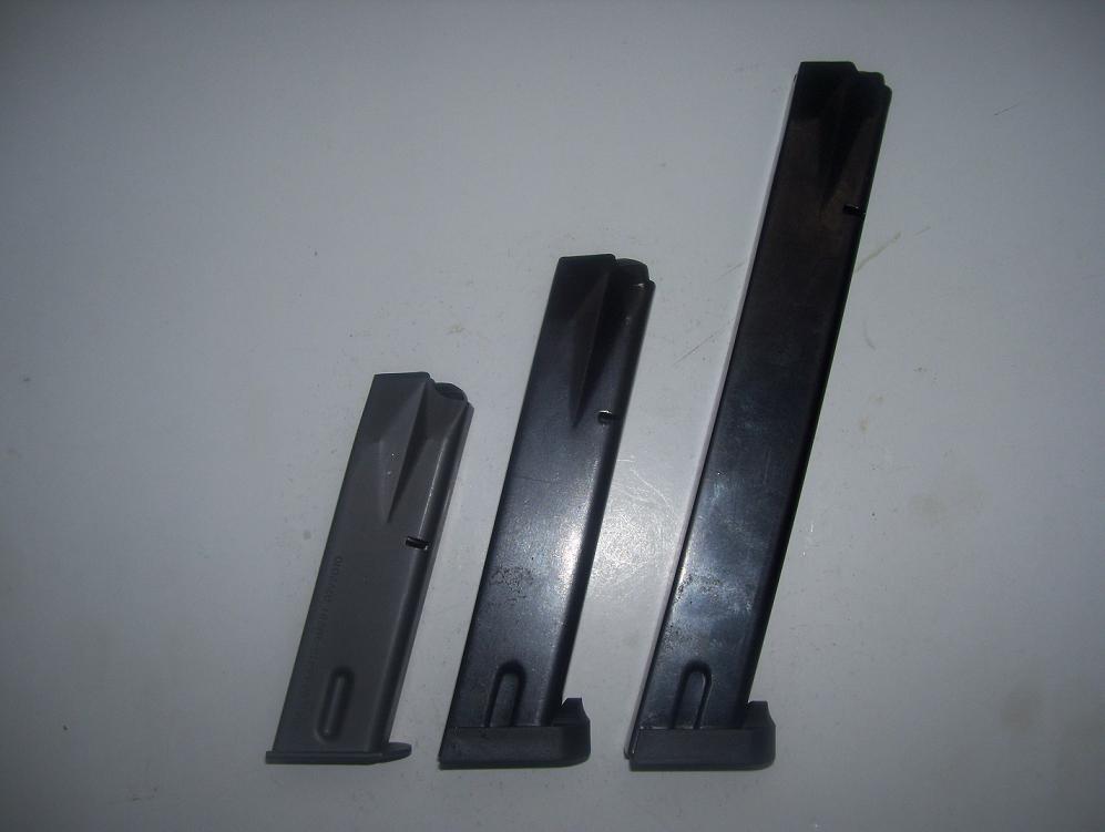 Hola vendo varios cargadores de la pistola Beretta 92 F , los normales son militares de 15 cartuchos , el del medio es de 22 cartuchos cartuchos