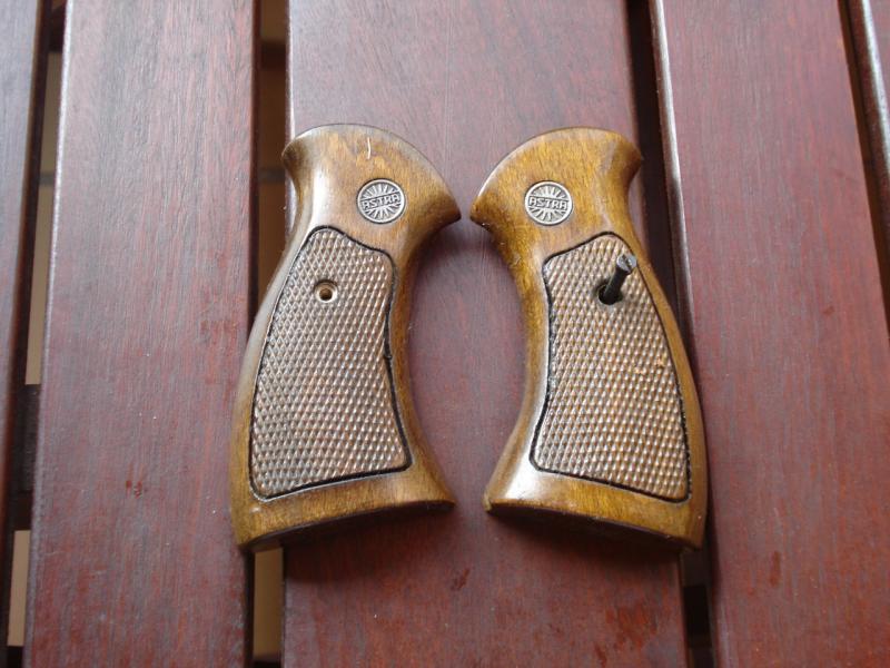 Hola, vendo unas cachas de revólver Astra originales, no estoy seguro del modelo concreto (creo que valían para el Cadix y el NC6) mirad las fotos, están usadas con algunas marcas pero en buen estado y con tornillo. 35 € envío incluido, por correo certificado.