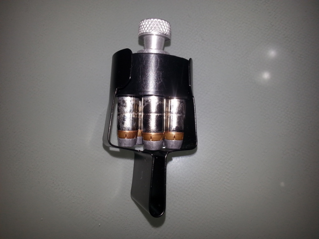 El primero de los modelos, es un portacargador metálico, especialmente fabricado para el porte discreto, que permite la puesta y retirada rápida del portacargador del cinturón.
