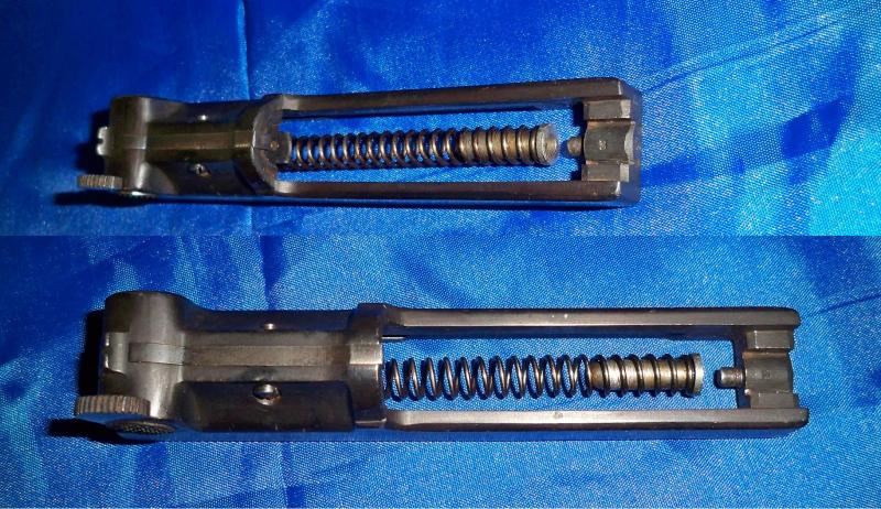 En esta segunda foto se aprecia mejor la parte de la guía, su orificio y el tetón de la corredera. Como puedes comprobar Sergiogreene tu guía no coincide con la mía por lo que solo cabe pensar que no es original y se trata de "un apaño" de circunstancias (Prueba de ello es la ranura que presenta, más propia de un tornillo adaptado a tal fin).