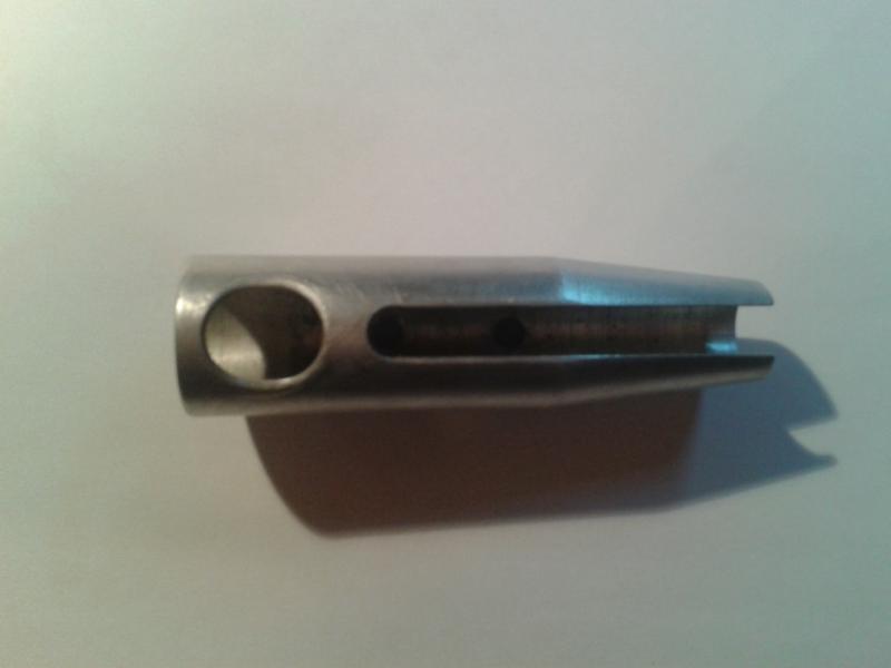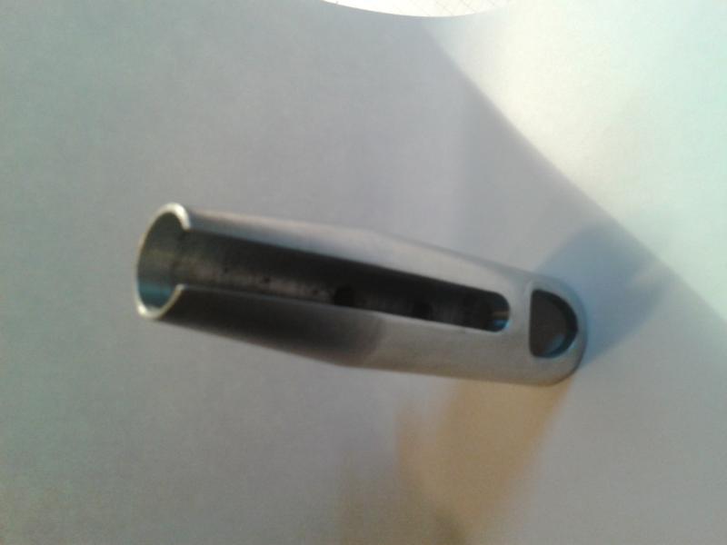 con un tubo de acero y una dremmel se podría empezar a hacer? o saltaría por los aires?? he pensado pillar un tubo que pudiera poner por el punto de mira y que mediante un giro pudiese quedar fijo, aunque practicandole un par de taladros para ponerles dos tornillos como el que sale en la foto y fijarlo mejor, al tubo lo dejaria solo 3-4cm que saliera de la boca, donde se le practicaria un agujero a cada lado e intentaria buscar a alguien que me soldara un par de tubos cuadrados de menor diametro a modo de arco... vamos imitando al freno del barret, que yo supongo que si reduce un .50BMG el .300 lo deja como un .22LR jejeje