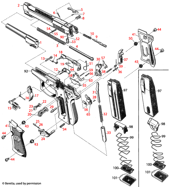 Busco el desarme completo de la beretta 81fs o la 84fs, (solo cambia el calibre). el desarme basico de coredera y cañon, es de cajon, pero busco el completo pues cuando le tenga que pegar una limpieza a fondo de las que me gustan a mi no se por donde meterle mano. un saludo.