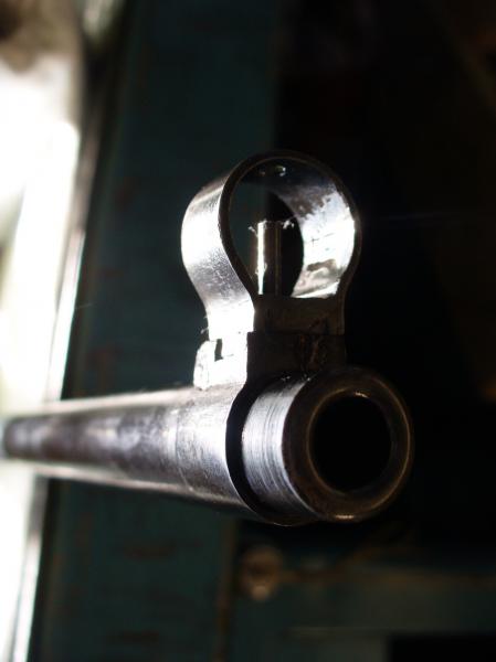 He estado dándole vueltas al tema del punto de mira del mosín, y una solución que se me ocurre es que le sueldes un trocito de tubo de latón del que venden en las tiendas de modelismo (hay de varias medidas).