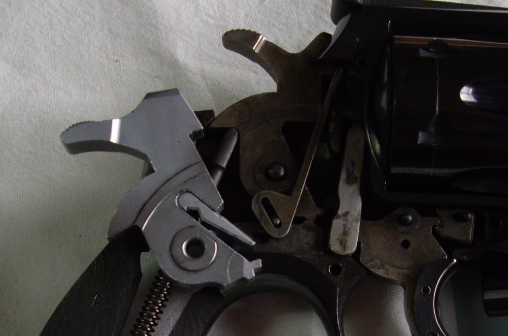 me encuentro que le he querido afinar el gatillo,pero al cambiarle el muelle del disparador por uno mas liviano, cuando amartillo no gira el tambor, a no ser...que eche el gatillo hacia adelante.