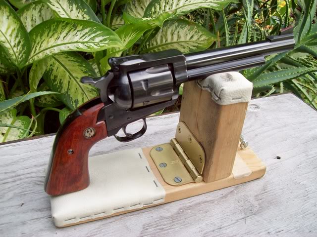 Pues sin liarse mucho, y quitándole las cachas, como hay que hacer en la mayoría de bancos de tiro, se soluciona con un simple tornillo de banco, unas piezas de madera para proteger la empuñadura o armazon, unos sargentos para sujetar el tornillo de banco, si no lo vas dejar fijo en la mesa, y un poco de imaginación.........
