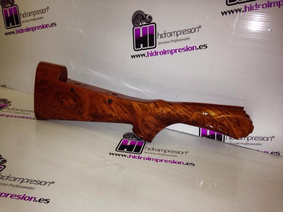 En Sevilla hay uno que hace la hidro impresion, pero solo lo hace en las culatas, pues no son armeria. Para el arma completa hay que llevarla en persona y esta alli mientras hace el trabajo. Lo malo es que creo que es algo caro. Un arma completa me comentaron que cobraban 150 euros. Dejo enlace de su web.