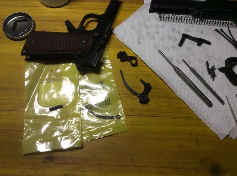 Después de un buen rodaje con mi chinita de acero fresado mecanizado y cambiarle todos los muelles y habiendo trabajado con la lima, cepillo y pasta pulidora. Decido adquirir un set de la casa Ed Brown para el performance de la presión del disparador y tener mayor calidad-precisión de material.