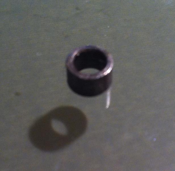 Te sirve cualquier trozo de tubillo de acero de Ø6 exterior; El diámetro interior es lo de menos por que simplemente se apoya en el muelle y pasador de la palanca por los extremos; 4 mm de diámetro interior iría bien y en esas medidas es más fácil de conseguir. Puedes cortar un trozo de unos cms de largo, y montarlo en el taladro en lugar de la broca y con una lija adelgazarlo una décima o dos por el exterior. Luego ya cortas la rodaja a la longitud definitiva.
