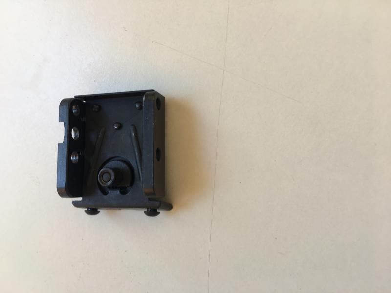 Desmonta los tornillos pequeños ( en la foto ya hay uno desmontado), quita la chapita y comprueba que el tornillo de regulación de deriva está bien y no hay nada roto. Desmontar con cuidado que el muelle interno puede salir disparado