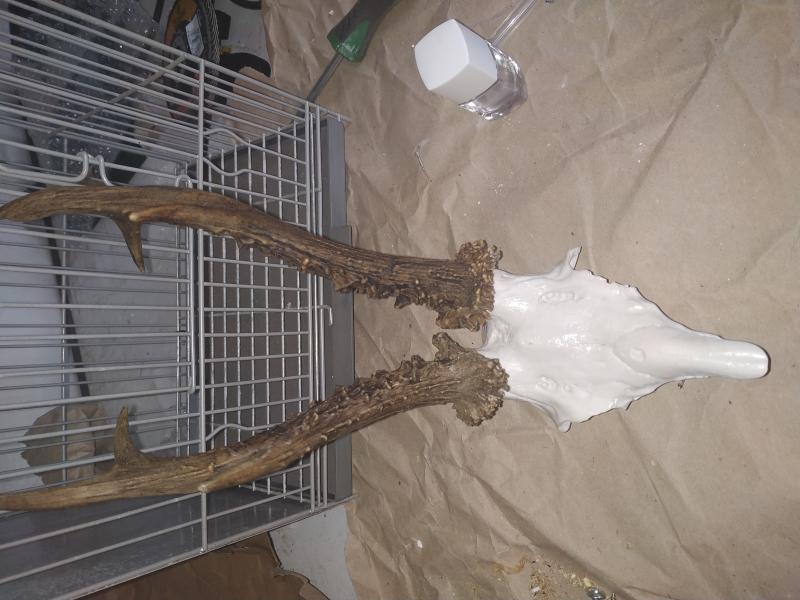 Hola compañeros, pues tenía unos cuernos de corzo y me decidí a montarlos en una cabeza de resina, voy 02