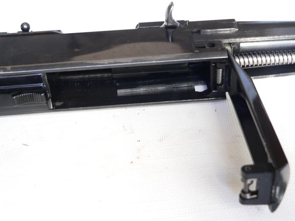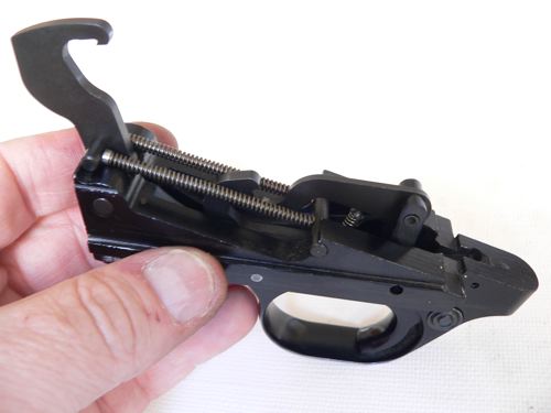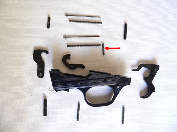 22.- Habíamos dejado aparte el grupo disparador. Aquí lo tenemos; ahora sí, con el martillo percutor descargado.