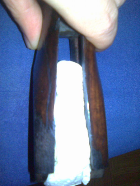Y última, si os dais cuenta, en esta se ve que han ¿¿¿lijado????, cerca de donde se une al guardamonte. La verdad es que la pobre escopeta está en bastante mal estado exteriormente, por una falta de cuidado total. El interior de los cañones sin embargo está bien. Ya tiene mi hermano los cañones para quitar pavón, pulir y repavonar, también la báscula para cambiar los percutores, así que por esa parte he solventado el "problema". Solo tengo que restaurar la madera y tener una escopeta con mucho mejor cara ¡ah! y cambiar la cantonera.