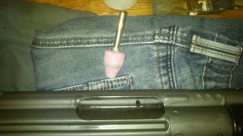 Finalmente le he pasado lija fina a mano, y una vez lo pruebe en el campo tiro, pasaré a darle un poco de pavón liquido para evitar dejar el acero visto.
