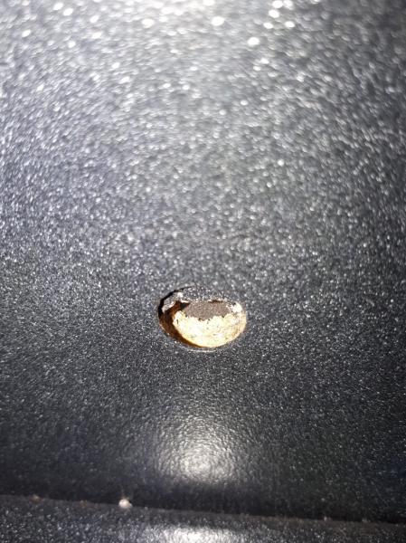 He visto que tiene taladrado un agujero para anclarlo a la pared y se ve un relleno con una especie de conglomerado de madera, ¿podría ser ese conglomerado?, ¿algún tipo de pintura?.