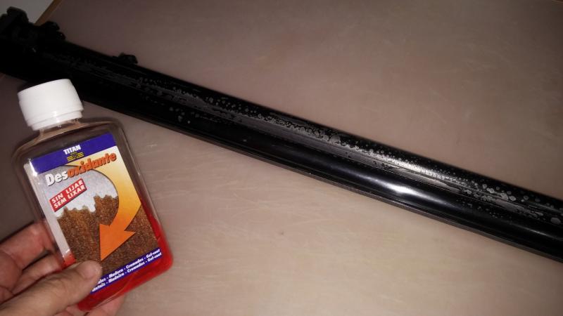 El primer paso era quitar todo el pavón antiguo con el desoxidante. Así quedó después de una buena mano de líquido.