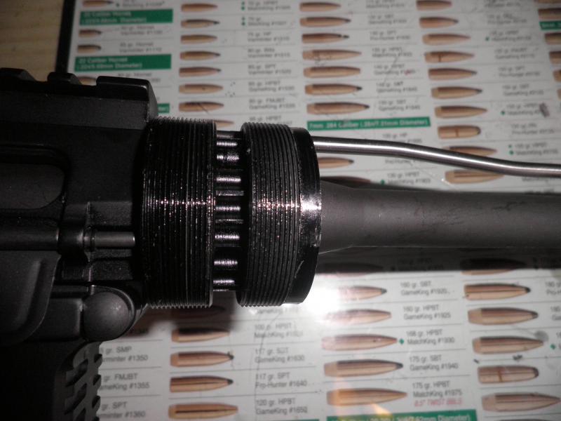 El barrel nut es la pieza esa llena de agujeros que ancla el cañón al upper, imagino que dispones de la llave específica para sacarla, no?.