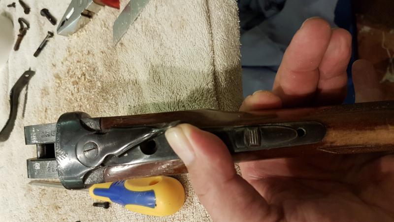 Si que esta duro el tornillo que sujeta la tapa de los disparadores. Intentare con un destornillador de la medida exacta limandolo para no marcar el tornillo.
