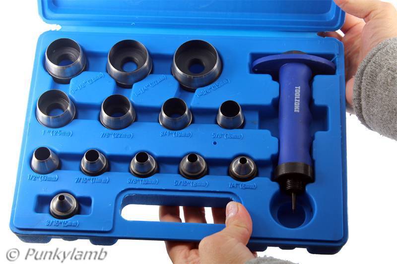 Y sobre los sacabocados... los que tengo por casa no son tan grandes. Así que aprovechando el viaje, he encontrado esto para aumentar mi colección de herramientas: