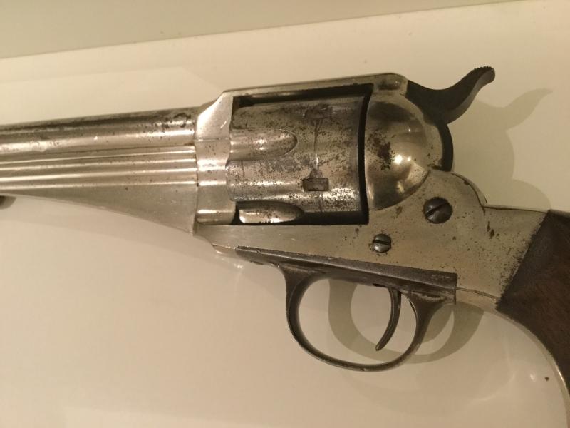 el compañero pregunta por un outlaw (remington) y le respondeis con esplicaciones del Pacificador (colt). los remington solo tienen tres clics.