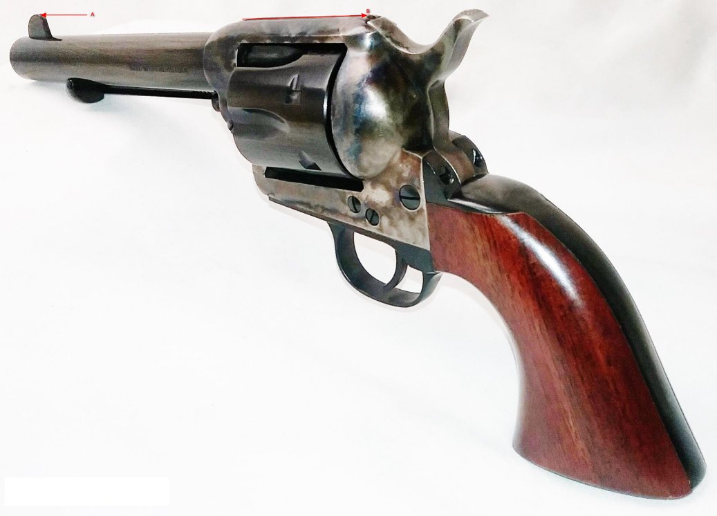 Lo curioso, leyendo post norteamericanos de este revolver de Uberti, mencionan que Colt lo hizo "adrede" para que tirase alto; los soldados solían apuntar a la hebilla del contrario, y así daban en el torso. Y, en casi todos, preguntan como se puede cambiar el punto de mira por otro más alto, porque sus armas tiran alto. No entiendo como apuntan el arma