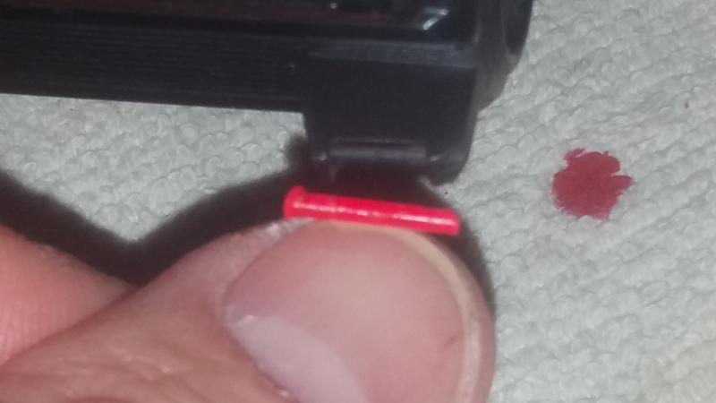 Hola, ayer tirando de repente no veia el punto de mira de la pistola. Me fije y la barrita de fibra roja habia desaparecido. Por suerte la encontre en el suelo, se ve que la especie de "remache" delantero salto y se salio de su sitio con el retroceso de la corredera. Me han dicho que con un mechero queme la poca punta que sobresale para hacer de nuevo el "remache" de tope pero no me fio podeis decirme quien lo haya hecho si asi se derrite la punta y se quedara en su sitio?
