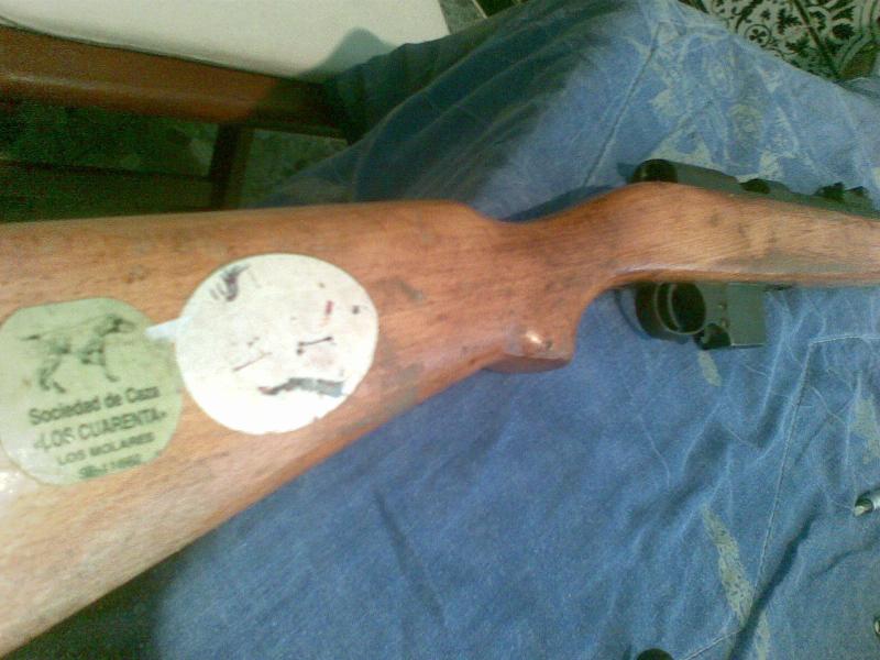 Ha quedado preciosa la carabina, parece madera de olmo????, o castaño, un truquillo para oscurecerla en el estado que está ahora, sin tener que volver a lijar, es en la última capa de aceite poner un poco de polvos de nogalina, haz pruebas antes en una tabla de madera. Aunque a mi me gusta ese color miel de la madera.