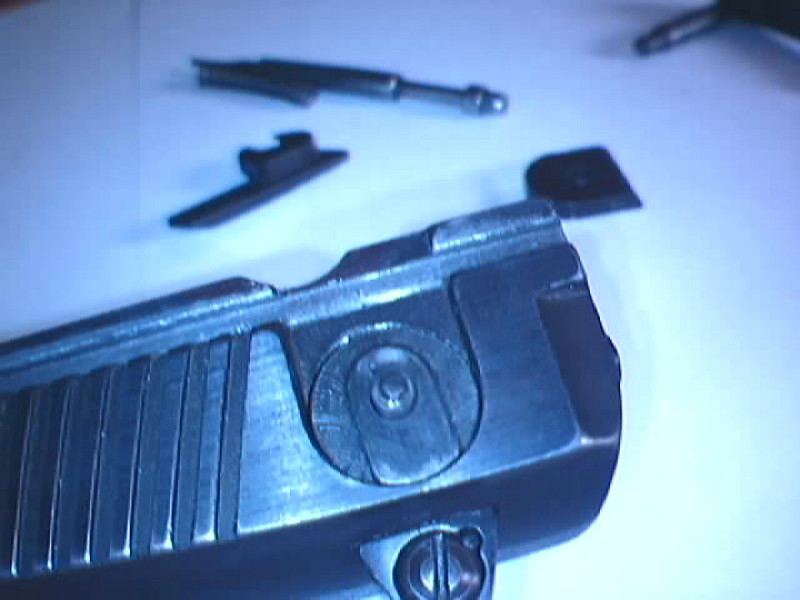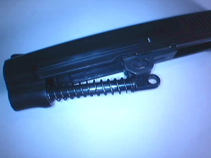Tras esto salen de su alojamiento el extractor su muelle los pitones de empuje y el tapón del orificio (este se puede desmontar al sacar el tope de la aguja percutora)
