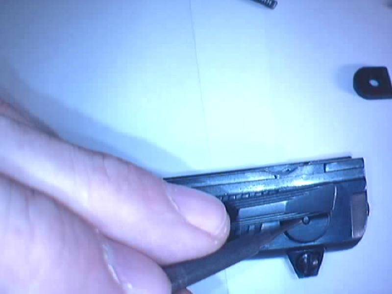 Con la punta de un destornillador extraemos el seguro de cargador hacia arriba (los modelos 28 no tienen seguro de cargador)