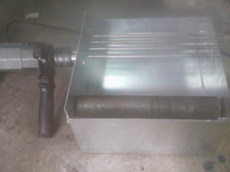 lo que lleva el taldro es varilla acero calibrado enfundado en goma transparente los demas rodillos son varillas son por si pongo un depocito o bota de mas diametro precisamente estoy limpiando la ultima limpieza y estan de lujo