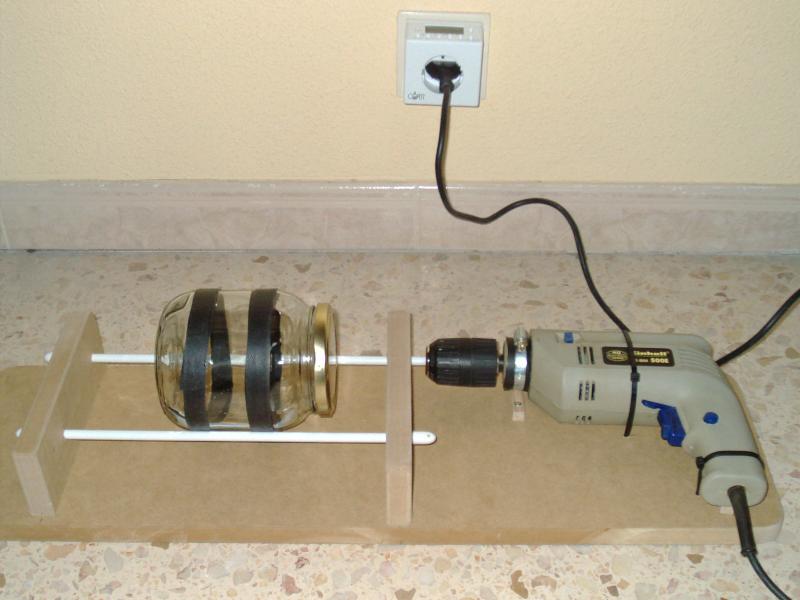 Yo tengo uno parecido,como podeis ver en la foto, la base es de madera, no me costo ni un €, pero calculo que si compras el taladro, la barillas, no te sale por más de 20 €.