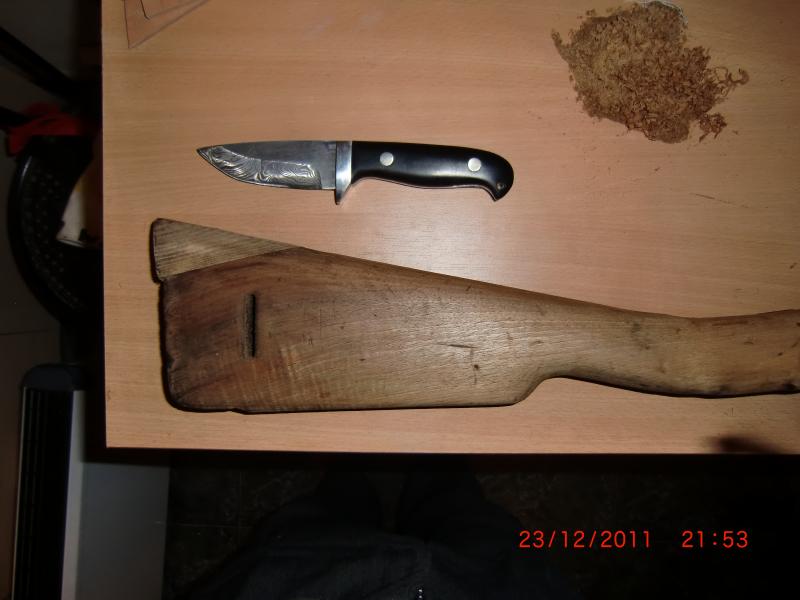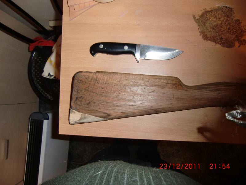 Después mucho tiempo, y luego de leer muchos articulos y temas, y visto como os quedaban los Mosquetones Oviedo y otras armas arregladas,y restauradas, me he decidido a descolgar de la pared el Mosquetón Oviedo de 1926, que por cierto estaba más negro que la boca de un lobo, y cuando he llegado a la culata me encuentro con este engendro de madera de pino.
