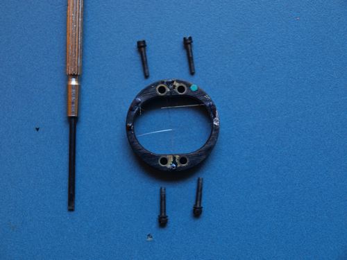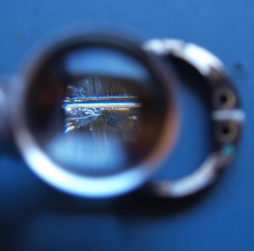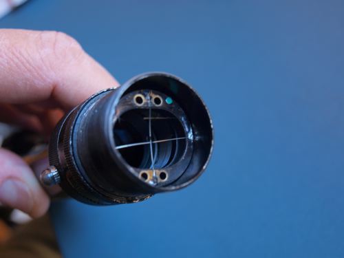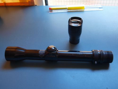 Es bien cierto que he de conformarme también con una retícula cross hair (pelos cruzados) y también es cierto que esos pelos cruzados parecen de mamut... Pero ahora sé cómo hacerlo y en cuanto encuentre hilos finos que puedan colocarse con estaño (se aceptan sugerencias) mejoraré el resultado.