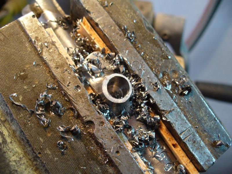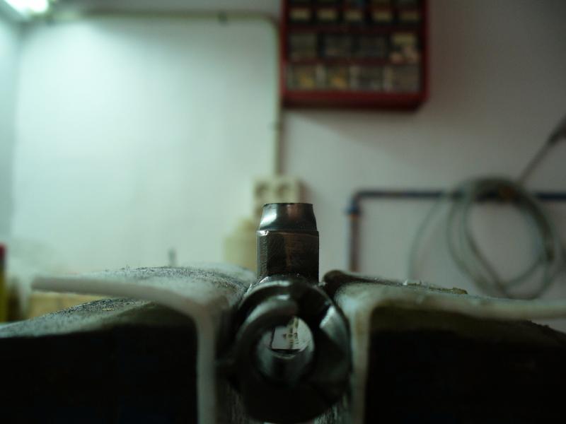 he procurado cortarlo lo más perpendicular posible al eje del cerrojo, de manera que las labores de ajuste posterior sean más sencillas, y posteriormente he limado para quitar rebabas, procurando dejarlo lo más plano y perpendicular posible