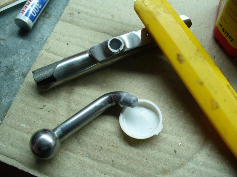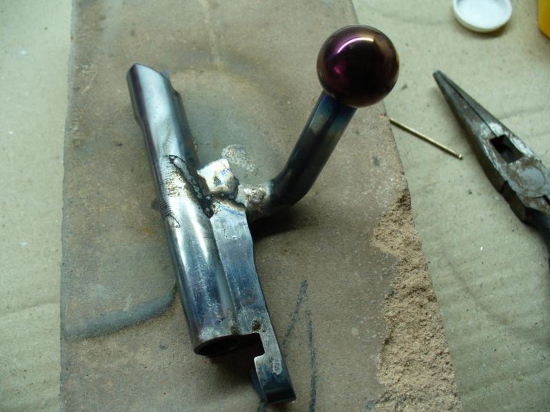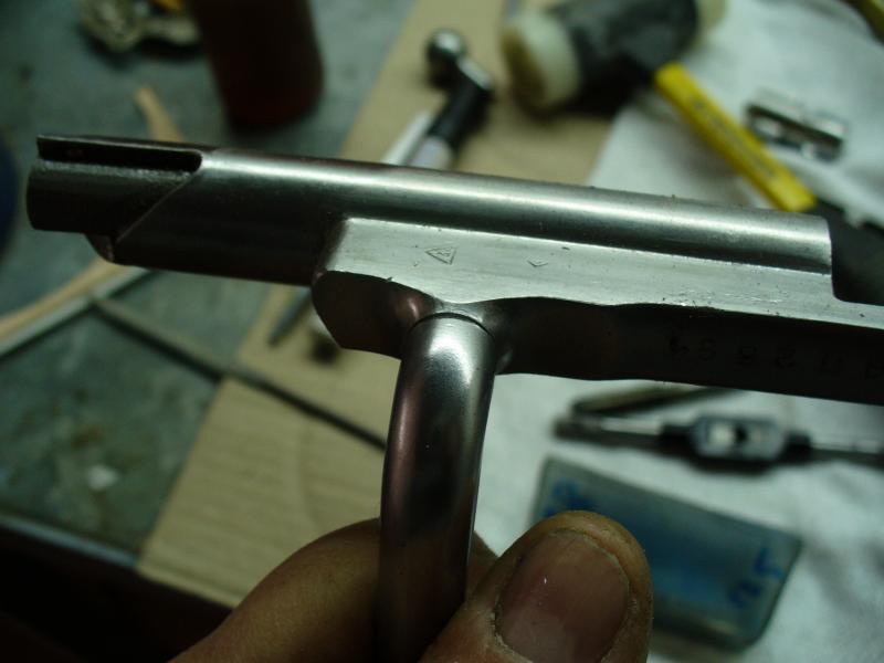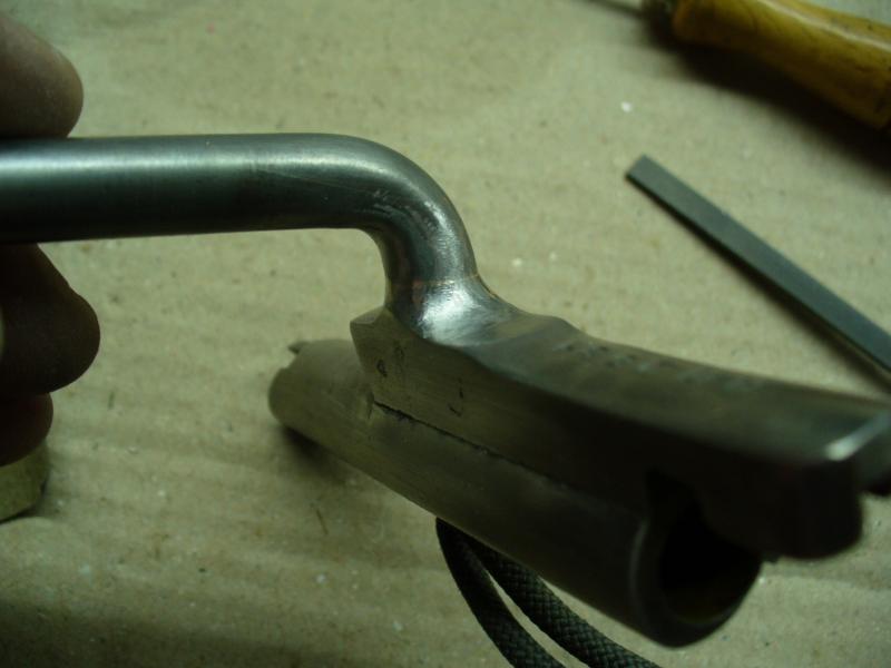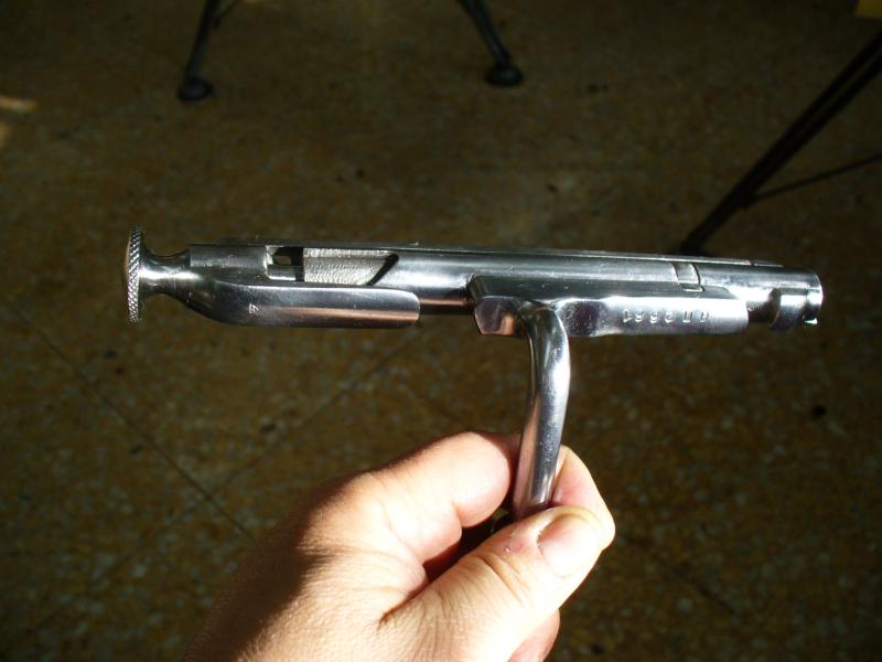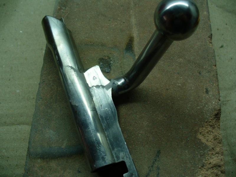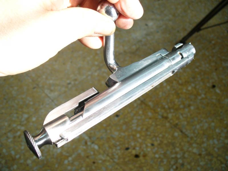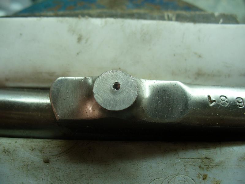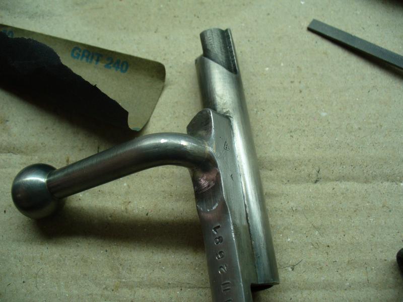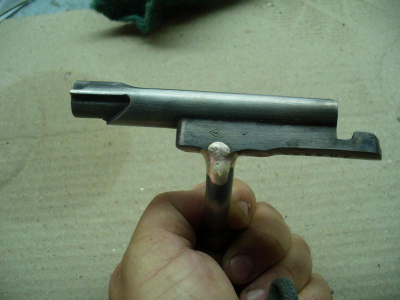 Para finalizar he pulido el cerrojo con una rueda de trapo y pasta de pulir. Se nota que está soldado porque queda un fino anillo dorado en la zona de unión. De haberlo hecho con eléctrica o TIG no se hubiera notado nada, pero los medios que hay son los que son.
