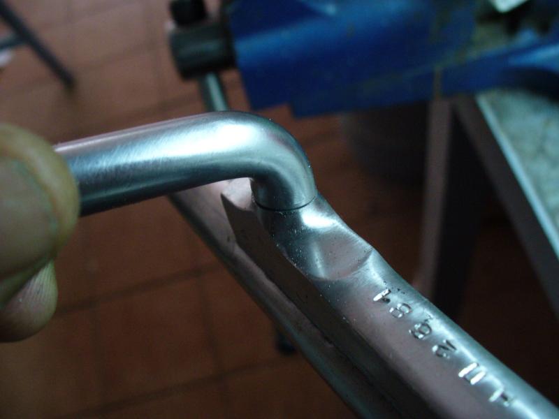 A la hora de taladrar, he usado una broca de 6.75 mm ya que la rosca de la maneta es de métrica 8 (8X125). El taladro le he hecho de 13 mm de fondo, más que suficiente ya que el metal tiene un grosor aproximado de 17 mm en la zona de roscado.