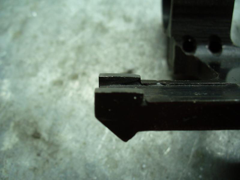 Hay que tener cuidado de rebajar las dos patillas de forma pareja, ya que si no el soporte móvil de la mira de inclina a un lado o a otro.